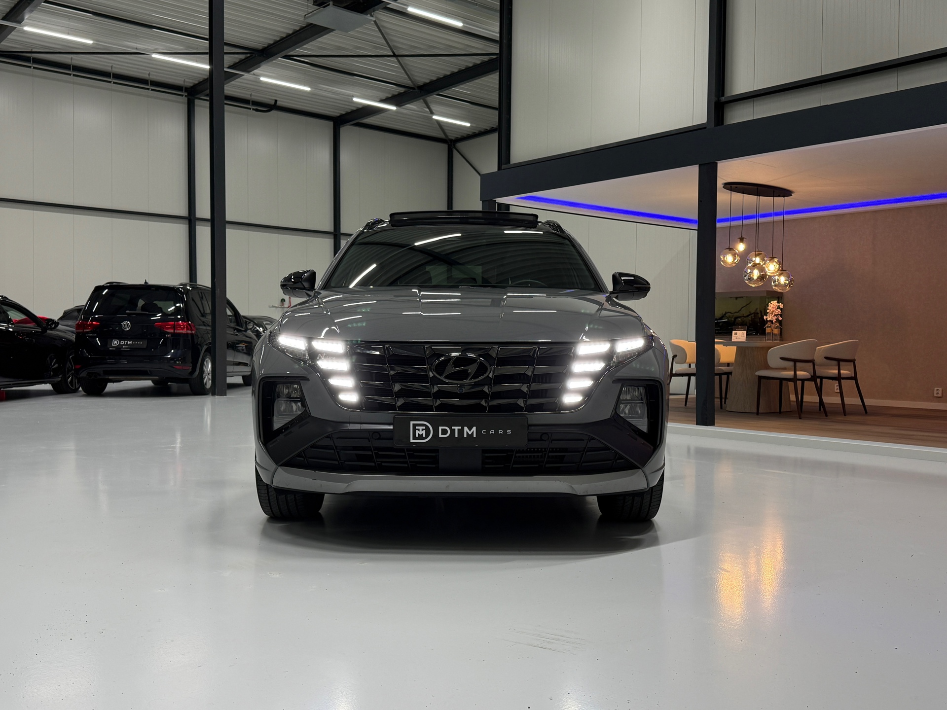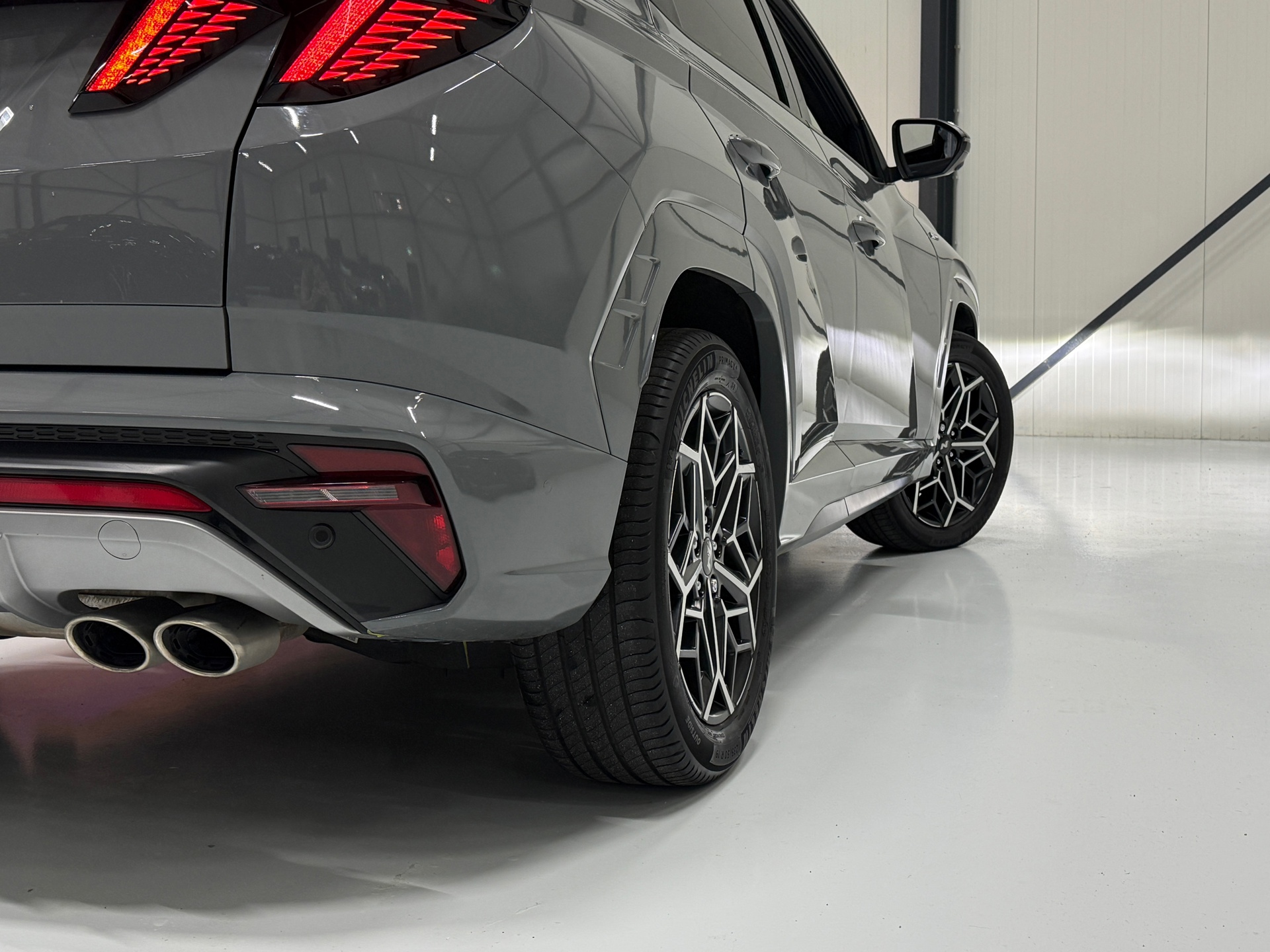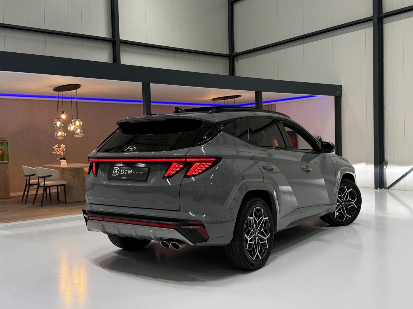 De N Line uitvoering geeft de Tucson een sportieve uitstraling met 19-inch lichtmetalen velgen, Alcantara/leder interieur met rode accenten en het stijlvolle Black pakket. Comfort en luxe staan centraal met elektrisch verstelbare stoelen voor bestuurder en passagier, inclusief geheugenfunctie, stoelverwarming en ventilatie, een panoramisch dak en rolgordijn achter.