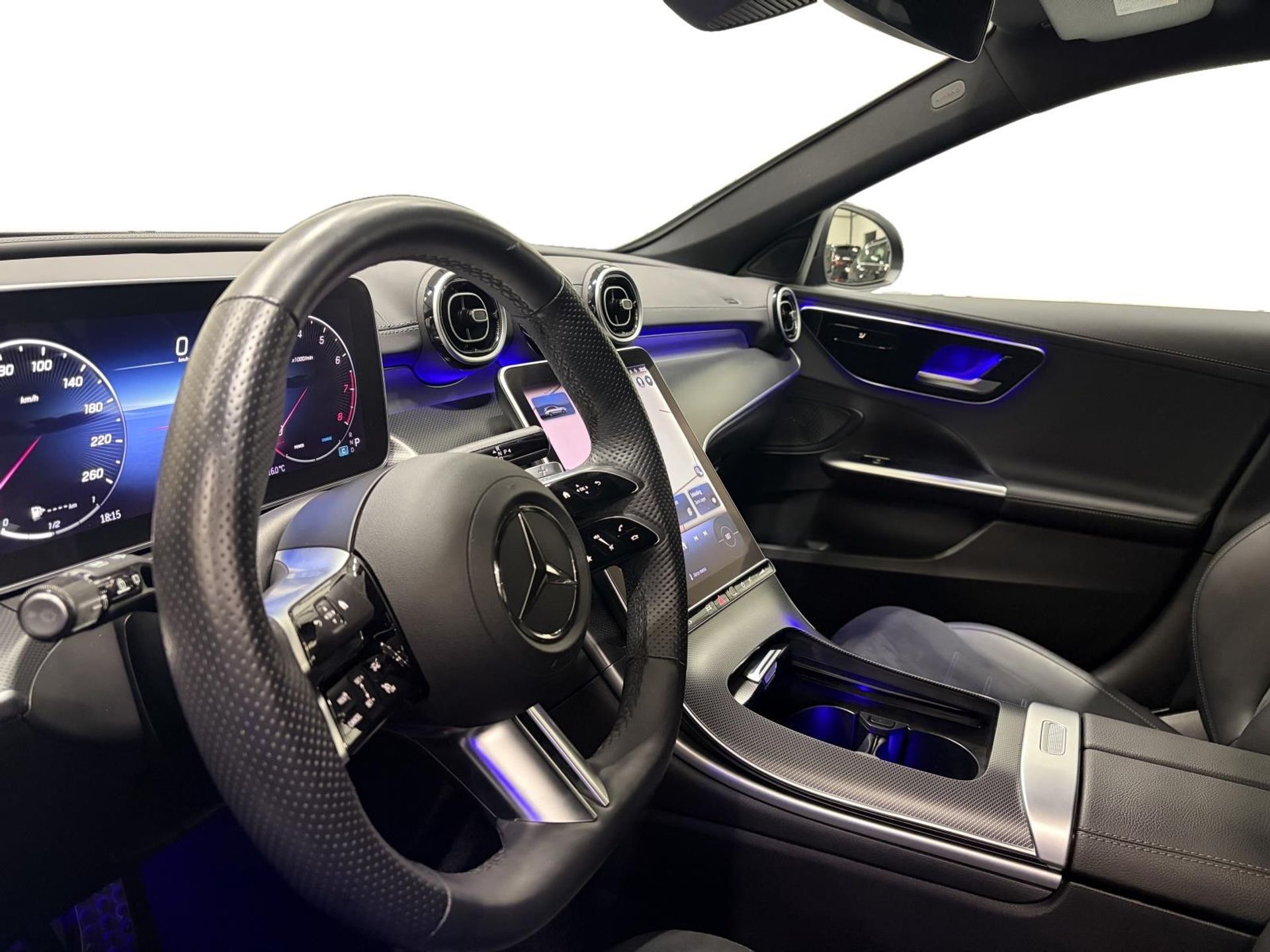 Bij het ontwerpen van de C-Klasse stonden rijcomfort, sportieve prestaties en luxe centraal. Met de 1.5-liter benzinemotor en automatische transmissie manoeuvreert u moeiteloos door het verkeer. Met slechts 19.174 kilometer op de teller is deze auto praktisch nieuw en direct inzetbaar. Het interieur met sportstoelen, leder & Alcantara bekleding, verstelbare lendesteunen en AMG-sportstuurwiel biedt een perfecte balans tussen comfort en sportiviteit. De elektrische achterklep, in delen neerklapbare achterbank en draadloze telefoonlader maken de auto daarnaast praktisch in dagelijks gebruik. Ambient verlichting, decorelementen in carbon en een volledig digitaal instrumentenpaneel geven het interieur een luxe uitstraling.